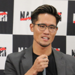 会見でコメントする平山