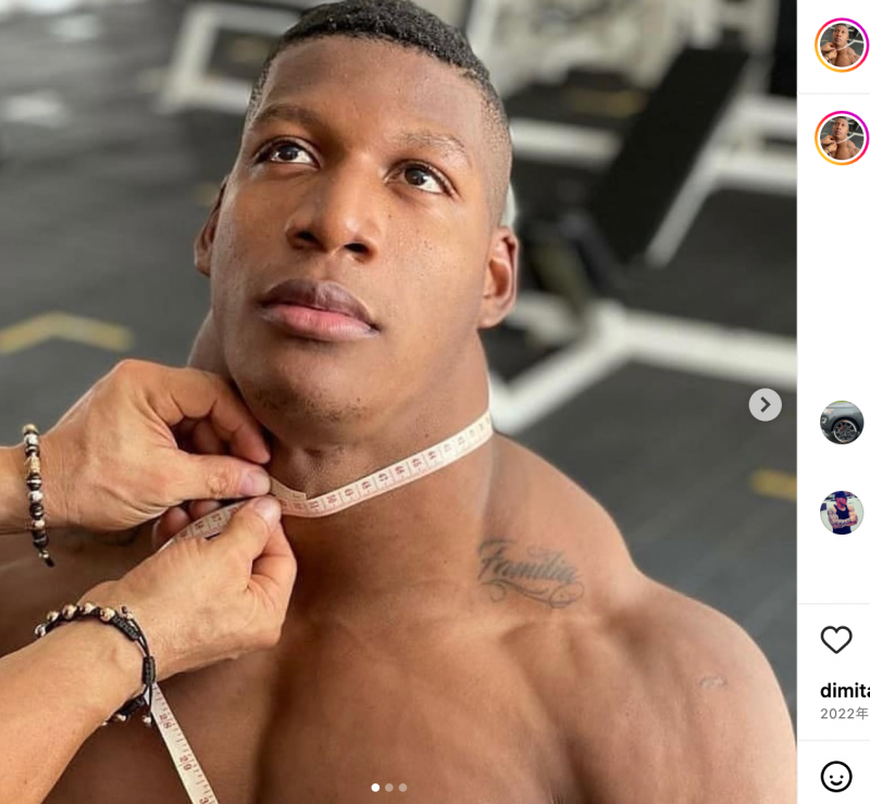 巨大な首を測るモスケラ@rubiel_mosquera__mより