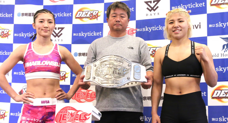 松田(左)と万智(右)がDEEP JEWELSストロー級暫定王座を争う