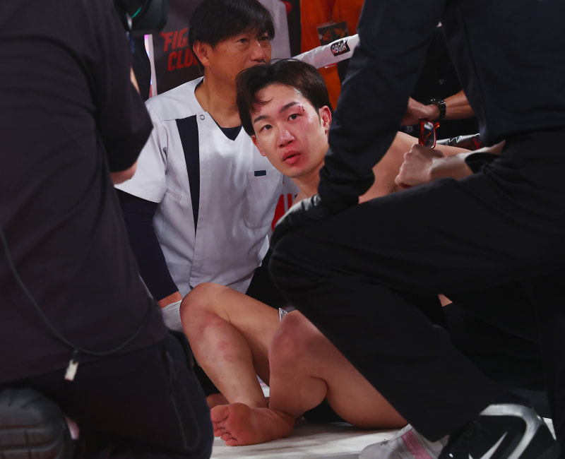 敗戦直後の朝倉未来、まぶたから出血が©︎RISE CREATION