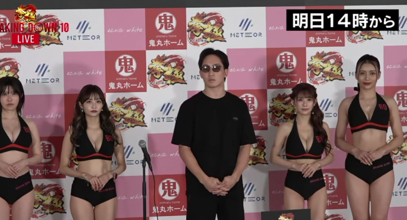 ラウンドガールと並ぶ朝倉(朝倉未来YouTubeチャンネルより)