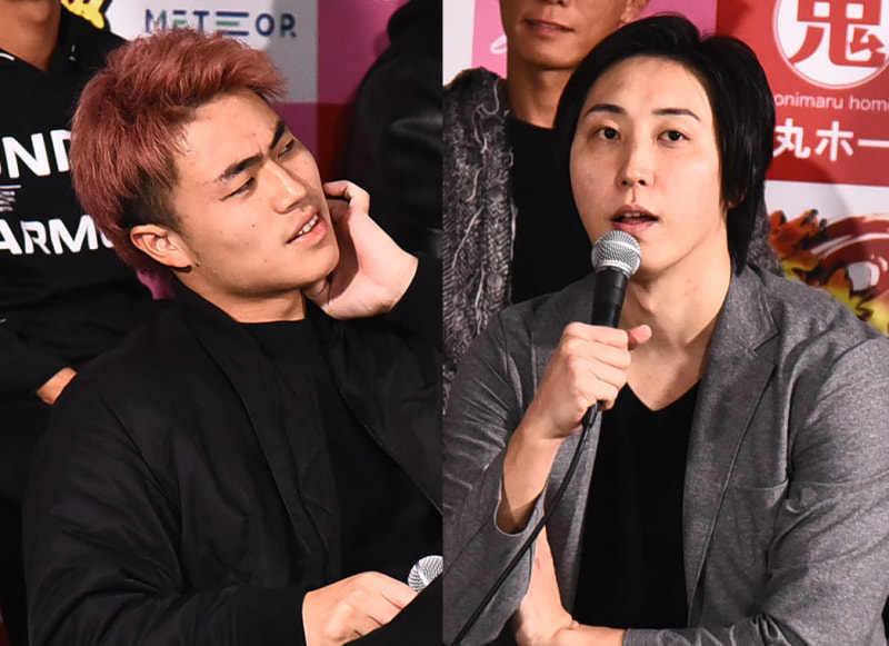 ブレイキングダウン10前日会見に登壇した10人ニキ(左)と溝口COO(右)