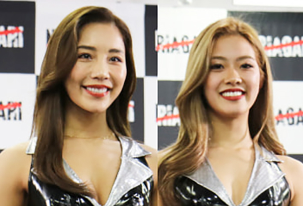 『NARIAGARI vol.3』のラウンドガールを務める麻田ゆん(左)とRIO(右)
