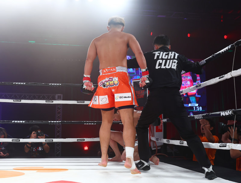 朝倉未来、ヒザから落ちてダウン©︎RISE CREATION