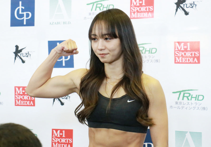 松谷が計量パスでマッスルポーズ腕の筋肉も膨らむ