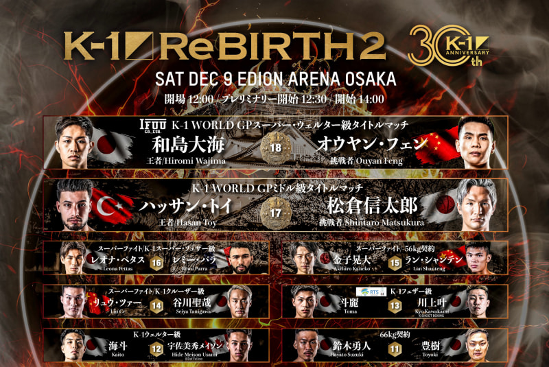 『K-1 ReBIRTH2』の全試合順が発表された