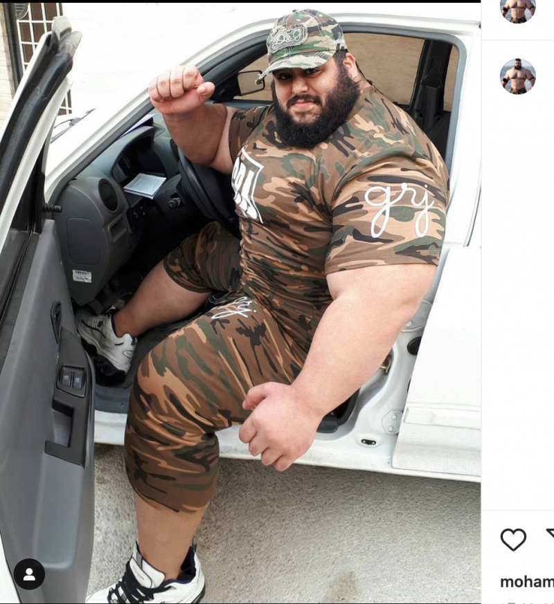 車から降りる“イランのハルク”のインスタより@sajadgharibiofficial