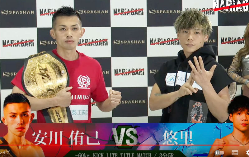 HEAT KICKライト級タイトルマッチで安川侑己と悠里が対戦する(YouTube皇治チャンネルより)