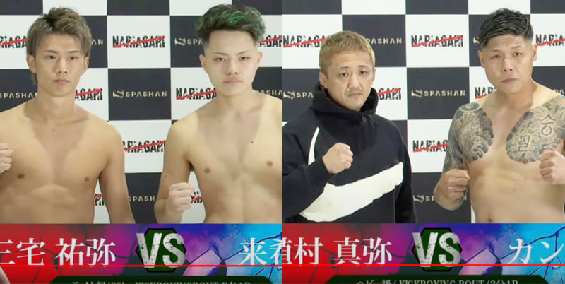 (左から)三宅祐弥vs来希、植村真弥vsカンホサが計量パス