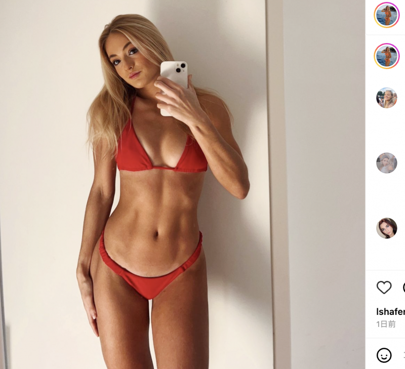 12月1日にアップしたローリンの赤のビキニボディ(@laurynlouisedaveyより)