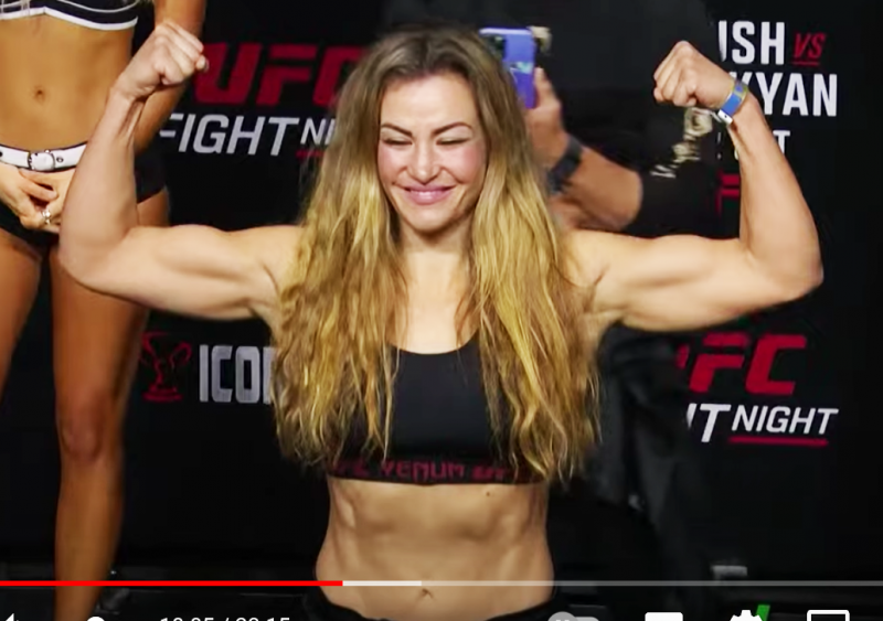 マッスルポーズを決めるミーシャ(UFC公式YouTubeより)