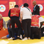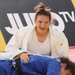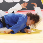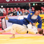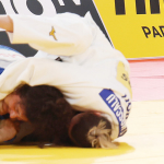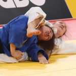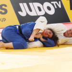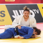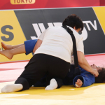 モスカルが足で相手の身体を挟み、片手で締め上げ、がっちり極まる
