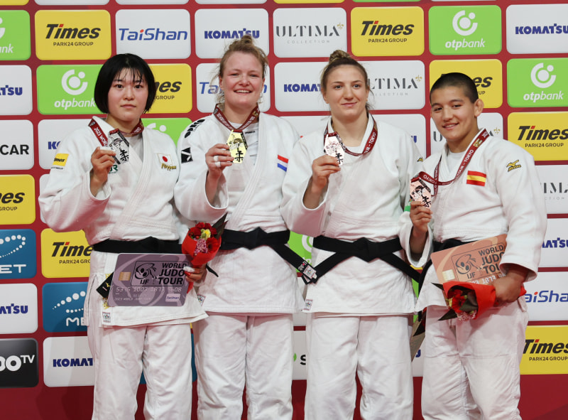 左から銀:田中志歩、金:サンネ・ファン・デイケ(オランダ)、銅:モスカル・セラフィマ(ルーマニア)、銅:ツノダ・ルーセント・アイ(スペイン)