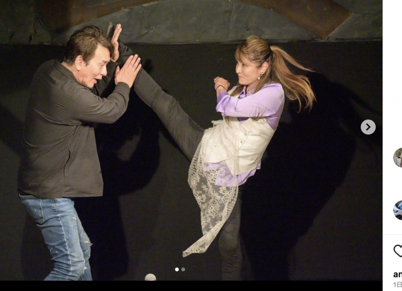 今年6月の志穂美悦子、67歳とは思えぬハイキック!(@etsuko_shihomiより)