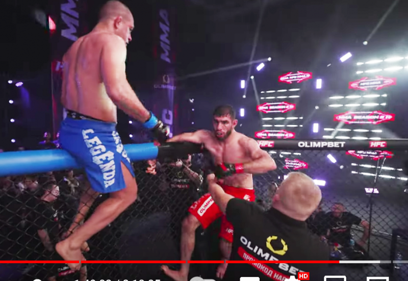 レフェリーに戻されるヒバティ(HFC MMA公式YouTubeより)
