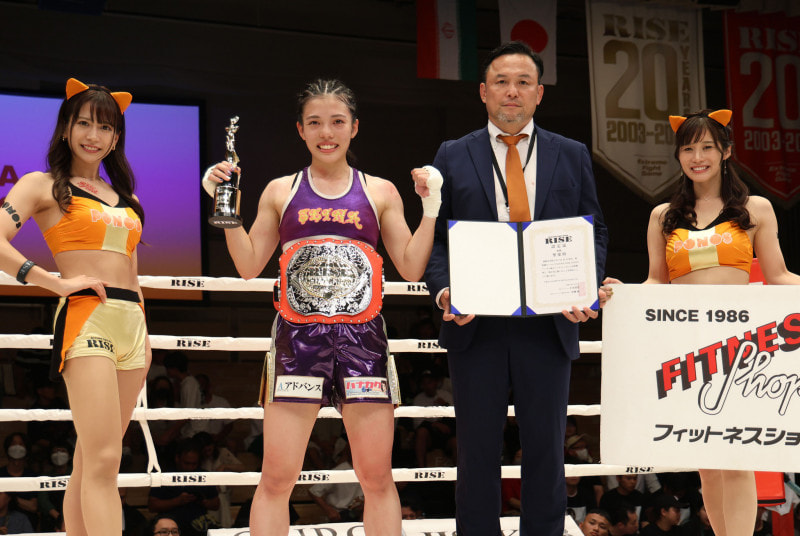 初代RISE QUEENバンタム級のベルトを巻いた聖愛(左から2番目)