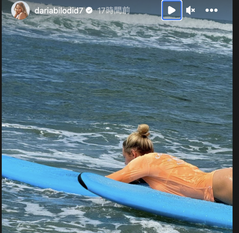 サーフィン姿のビロディド(dariabilodid7 ストーリーズより)