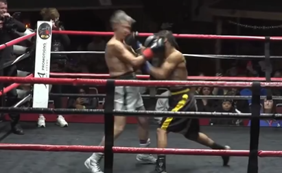 右フックをまともにもらう @BoxrecGrey