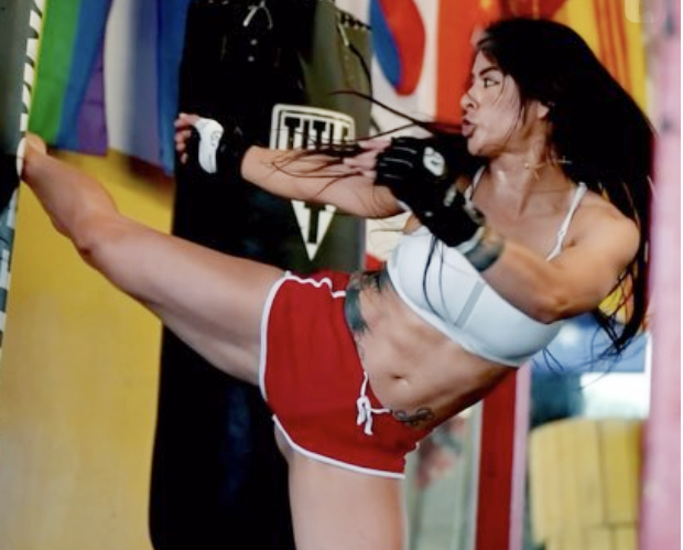 鍛えたボデイでサンドバッグをするアコスタ@loba_acosta_より