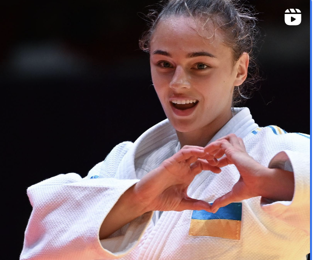 ビロディドが国旗の前でハートマークを作る(@dariabilodid7より)