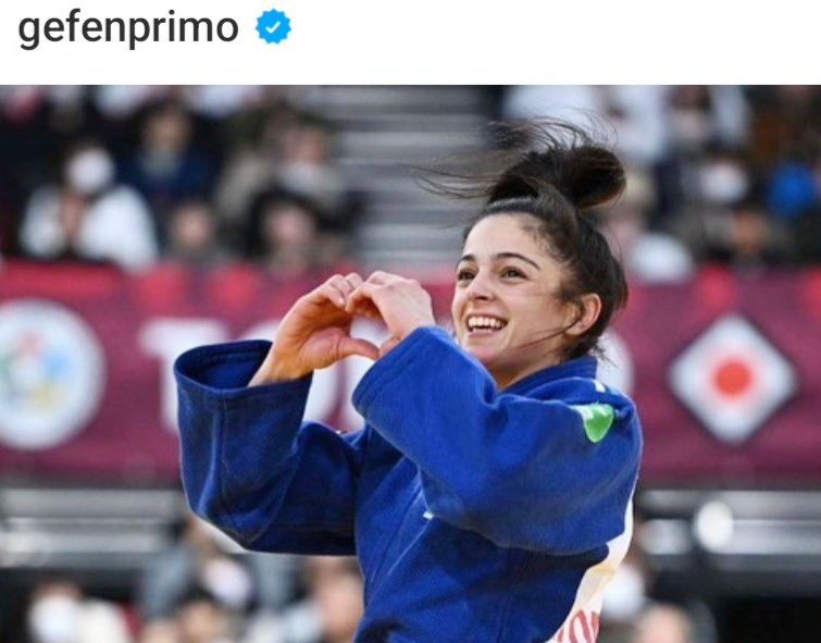 キュートな笑顔で胸の前でハートマークを作るイスラエルのゲフェン・プリモ(@gefenprimoより)