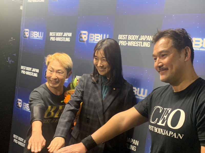 左からなべやかん、塩村あやか議員、谷口智一ベストボディ・ジャパンCEO