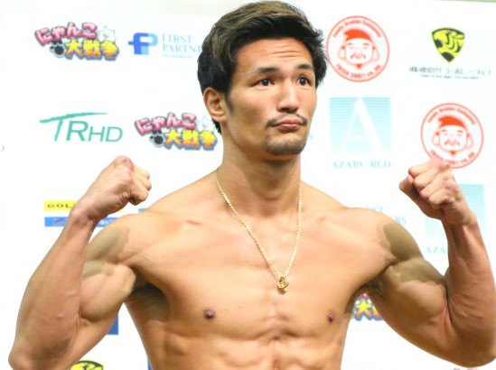 松倉は二日後のタイトルマッチへ向けてバキバキボディを公開した(※写真は前回のトーナメント計量)