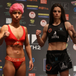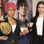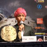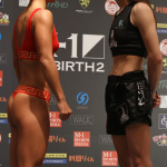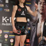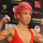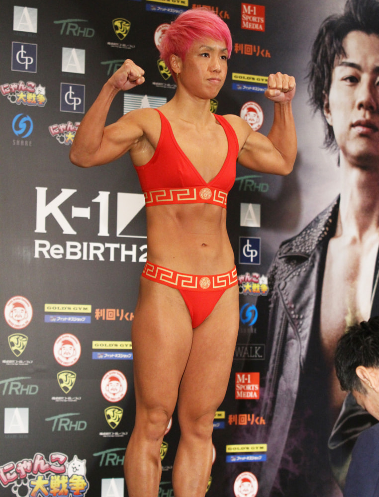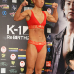 赤ビキニの強靭ボディでマッスルポーズのKANA