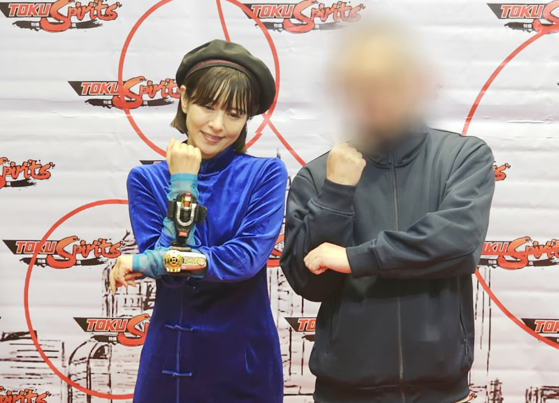 さとう珠緒が撮影会でオーレンジャーのポーズ!