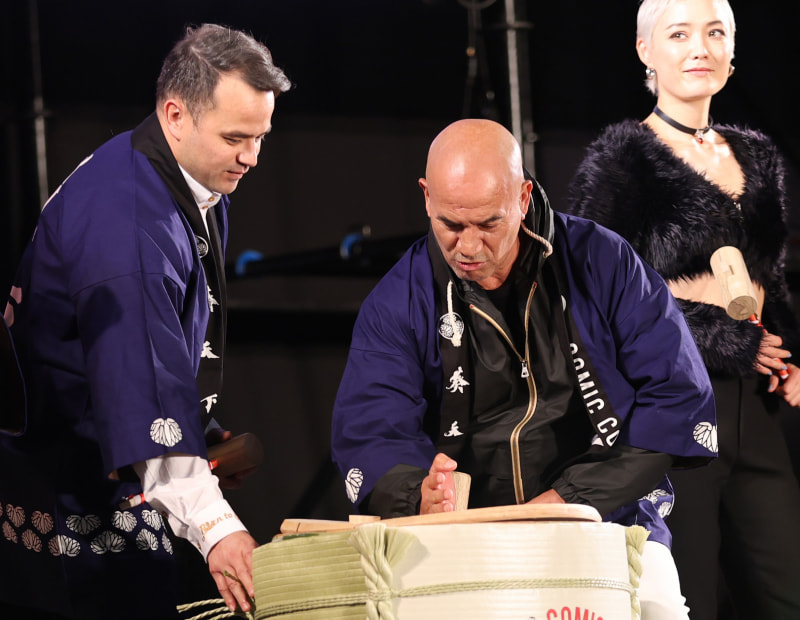 手刀で酒樽を叩く!支えるダニエル・ローガン