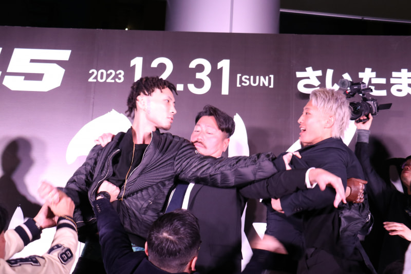スタッフが二人の間に入って制止