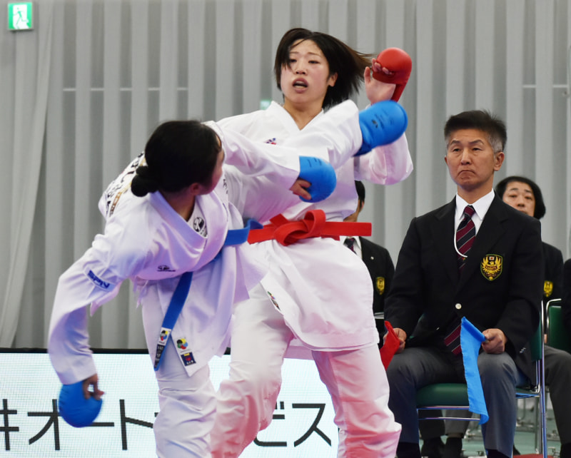 終了直前に逆転を狙った中村(左)は、この後ろ廻し蹴りで軸足を捻り怪我、立てなくなり車椅子で運ばれた