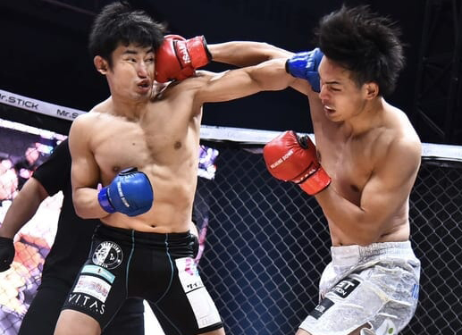右の細川のパンチがヒット!才賀紀左衛門の顔にめり込む