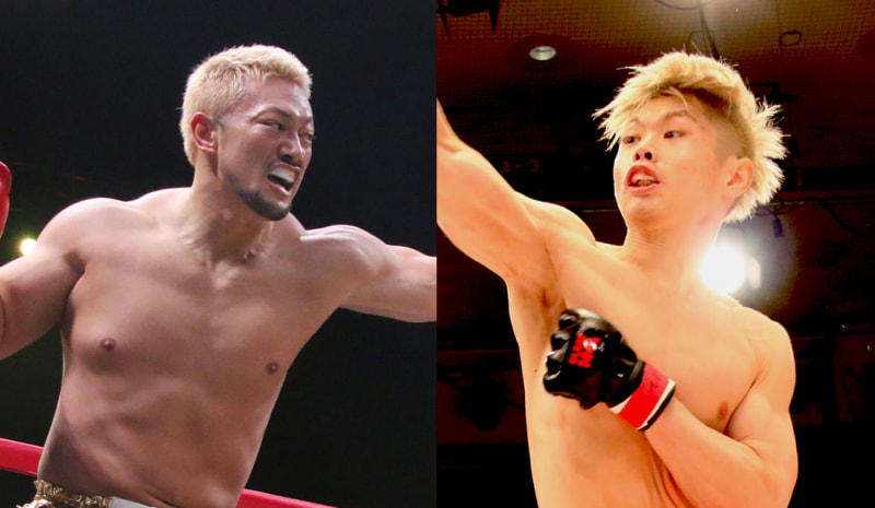 元K-1ファイター愛鷹(左)がプロレスデビュー戦で井土(右)と激突