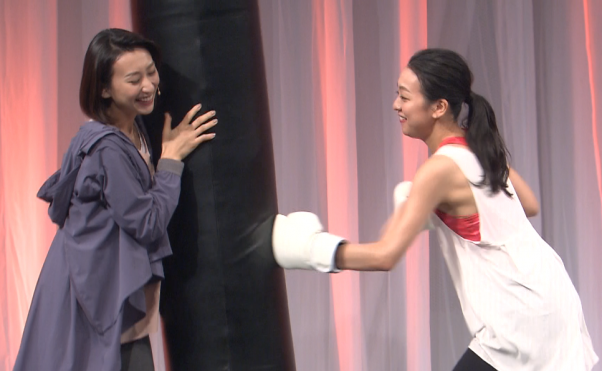 浅田舞は、妹の真央のパンチ連打披露でサンドバッグを支える!(写真は19年9月、ボクシングゲームに挑戦した住友生命のイベントにて)
