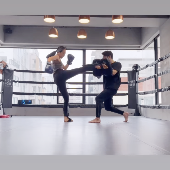 今年11月、浅田真央がキックジムでハイキック!(▶︎浅田真央インスタグラム ストーリーズより)