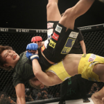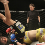 重田はライカをジャーマンスープレックスで投げ飛ばした