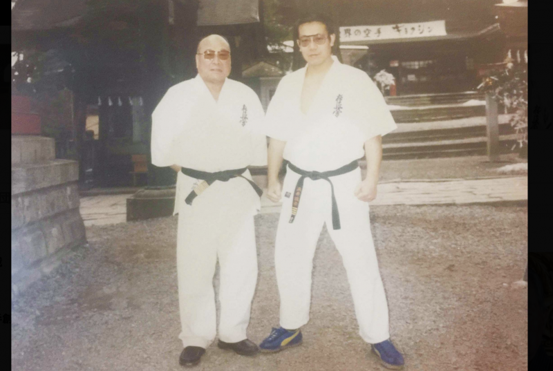大山倍達総裁と弟子の浜井識安石川支部長(当時)=極真護身空手HPより