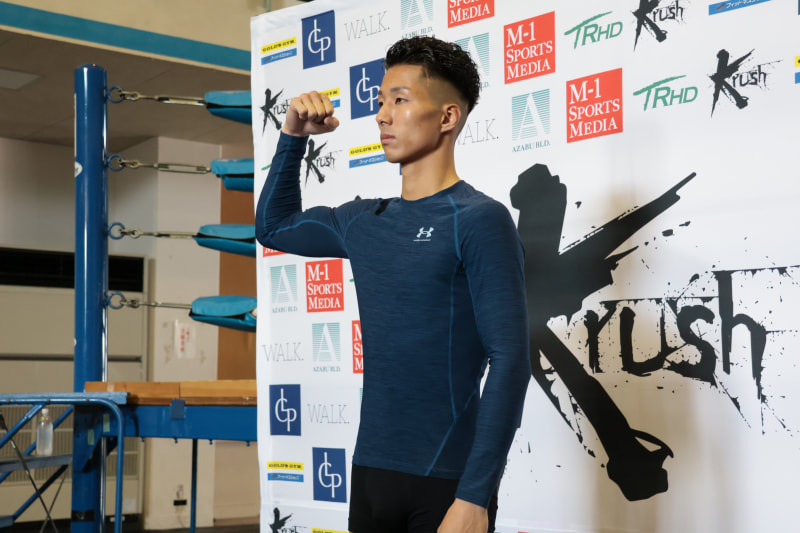 計量パスで片手マッスルポーズ