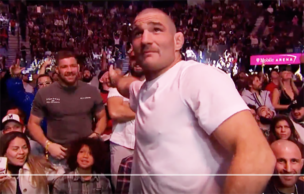 デュ・プレシに対し銃で撃つ仕草をするストリックランド @UFC