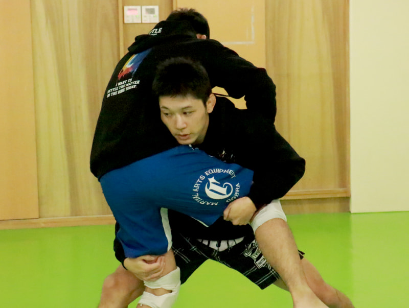 斎藤がダブルレッグでテイクダウン!