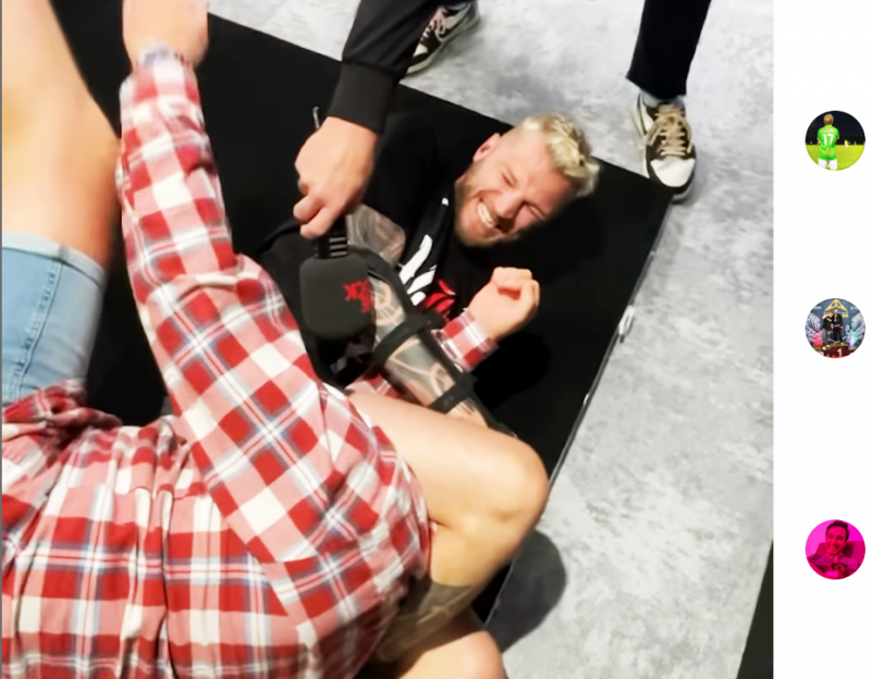 UFC現役トップ選手のフッカーが番組プロデューサーを三角絞め!@themorningrumbleより