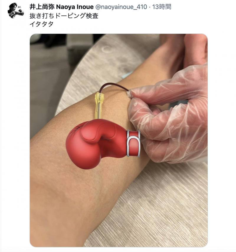 井上の腕に注射される痛々しい写真(@naoyainoue_410より)