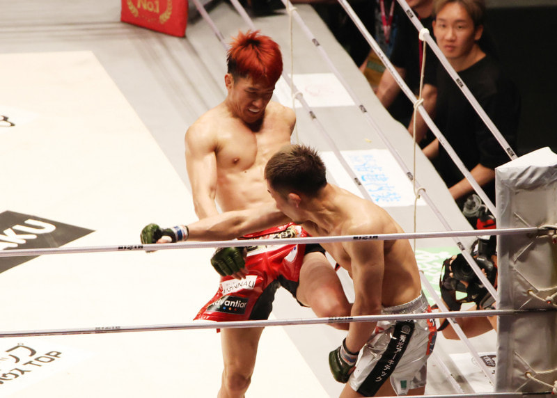 朝倉海の前戦、元谷をボディからヒザ蹴りでKO!
