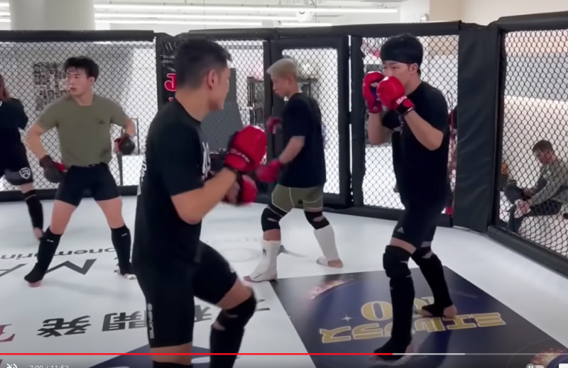 復帰へ向けて練習に励む未来(右)(朝倉未来YouTubeより)