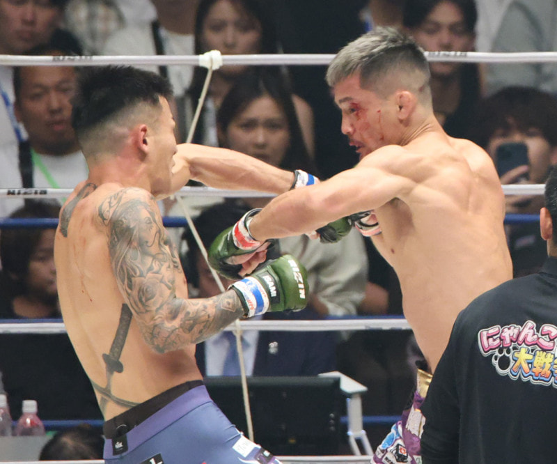牛久の左フックがヒットし萩原がぐらつく(今年9月)
