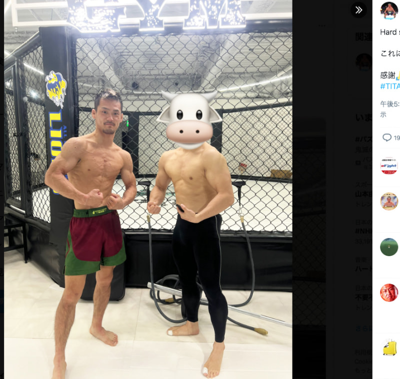 牛久(左)の身体がかなり絞れている(@kinnikun0228より)
