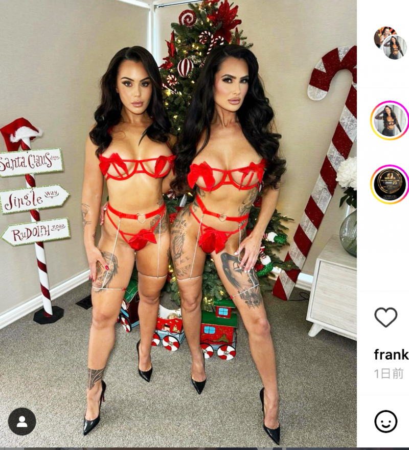 チェルネカ(左)が際どすぎるサンタ姿、右はランジェリーボクサーで人気のリトル・ベルシー@sugar_neekzより