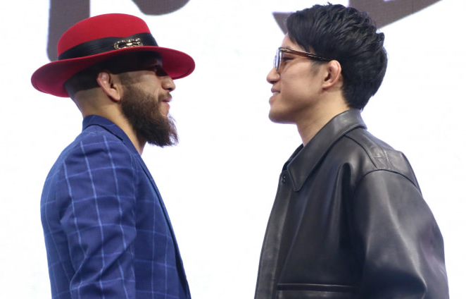 調印式のアーチュレッタ(左)と朝倉(右)。すでに戦いは始まっている