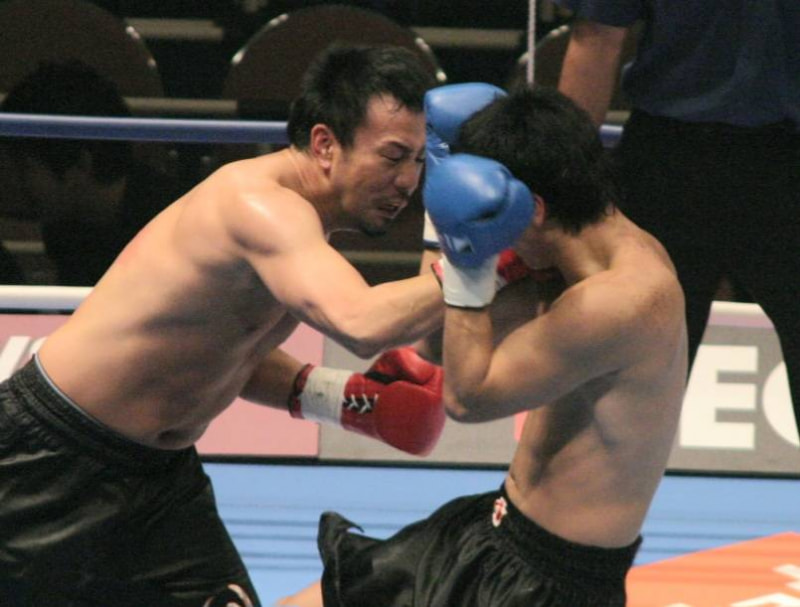 タケルがパンチを打ち込む